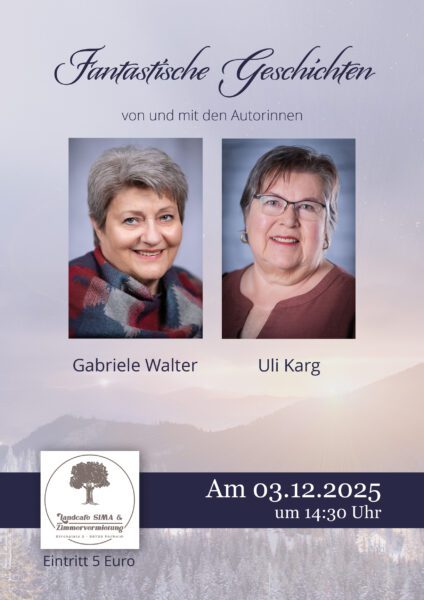 Wieder einmal eine Lesung in besonders gemütlicher Umgebung mit interessiert lauschenden Zuhörern. Dank gilt Simone, der Cafébetreiberin, die uns mit leckeren Kuchen und Plätzchen verwöhnt hat.
