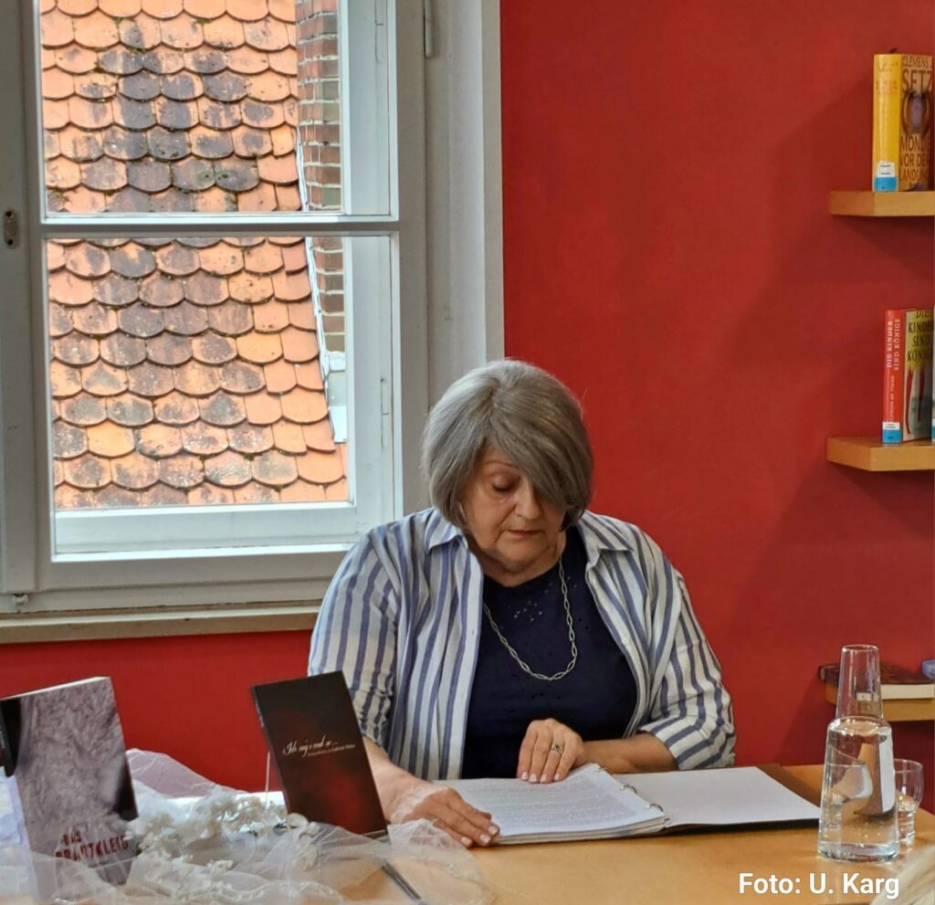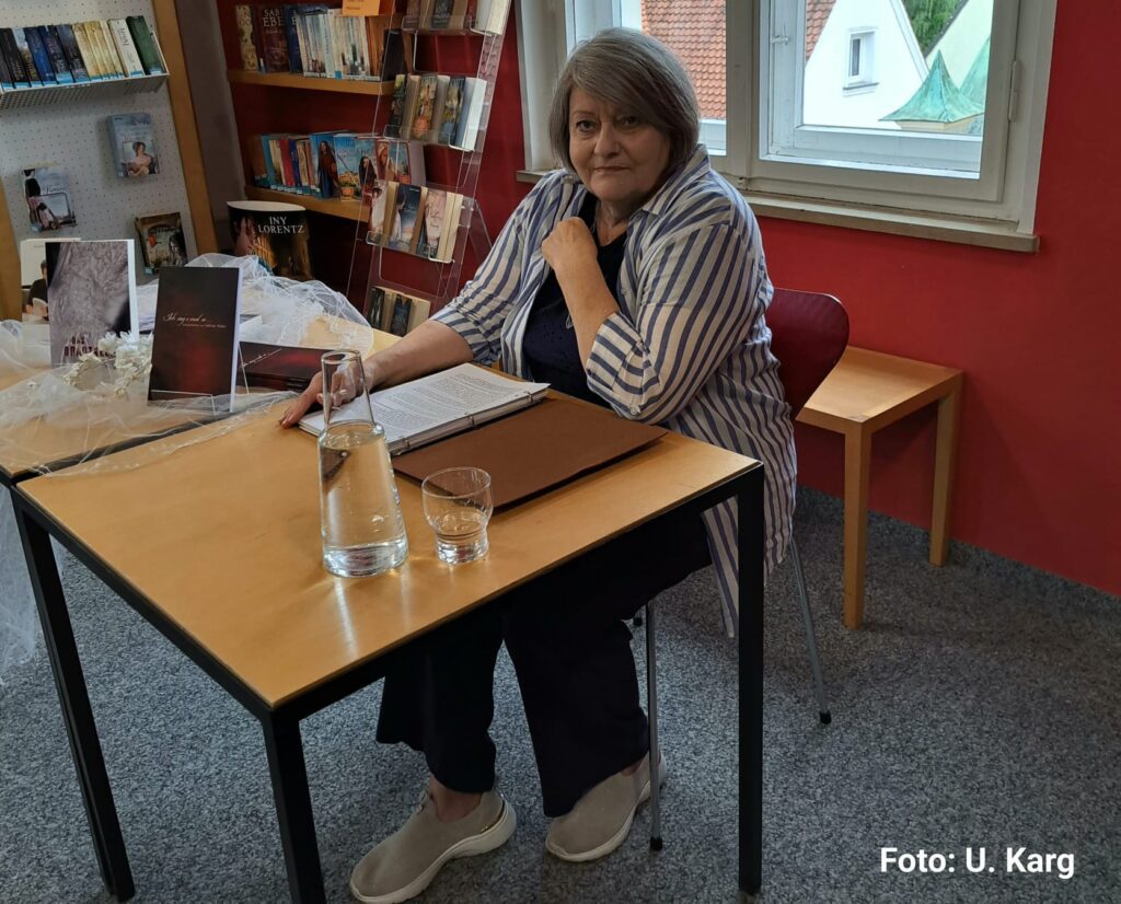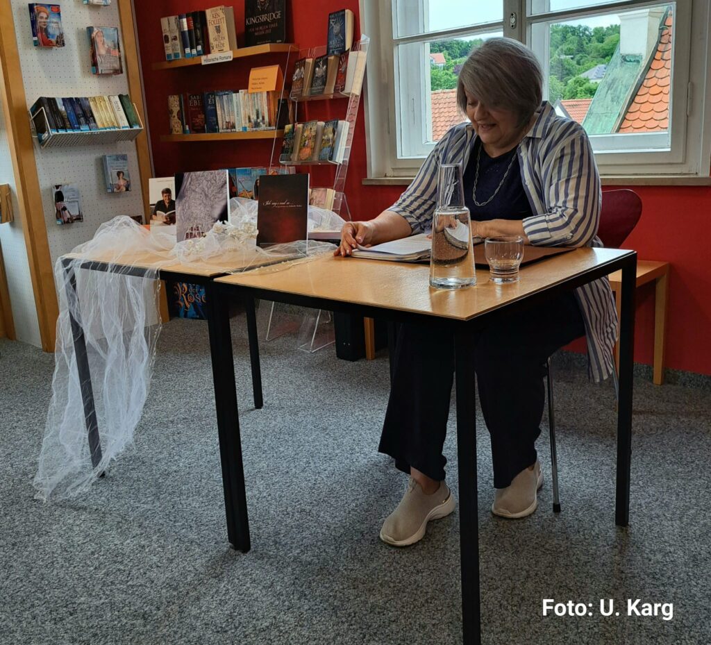 Nach der freundlichen Begrüßung und Ansage durch meine Autorenkollegin Uli Karg, durfte ich meinen neuen Krimi „Das Brautkleid“ vorstellen. Zur Pause gab es Kaffee und Brezen.