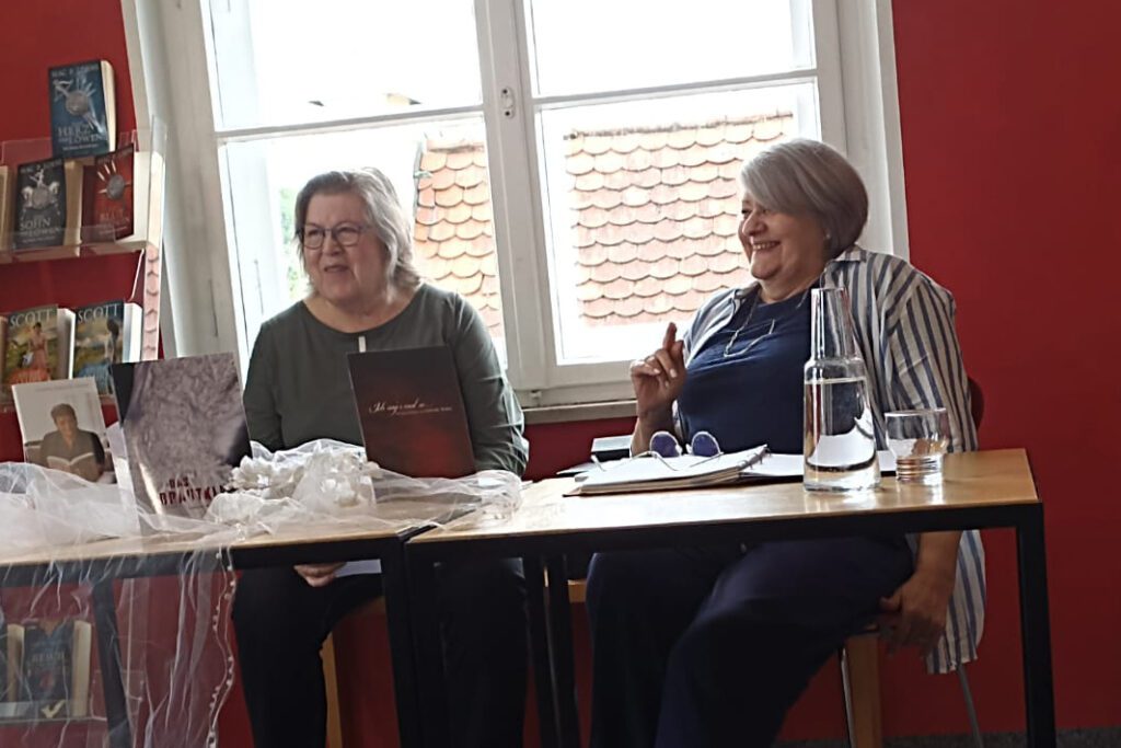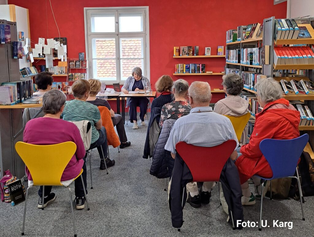 Herr Jonas Reinhard, der Bibliotheksleiter, und seine Mitarbeiterinnen versorgten uns sogleich gastfreundlich mit Getränken. Nachdem wir den aufmerksam lauschenden Zuhörern unsere abwechslungsreichen Erzählungen und Gedichte vorgetragen hatten, wurde uns und den Zuhörern zur Feier des Tages alkoholfreien Sekt kredenzt.
