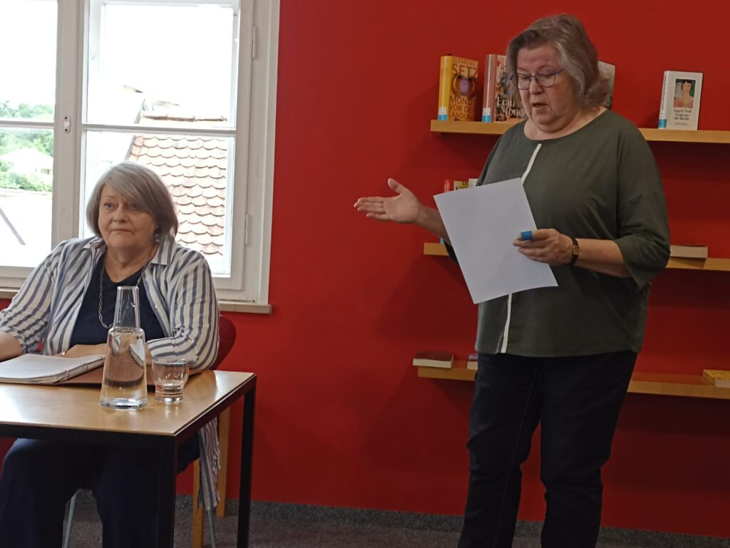 Zur Valentinslesung am 14. Febr. wurden wir – Ingrid Riedelsheimer, Gabi Eckner, Ulrike Tielemann und ich – im liebevoll dekorierten Lesebereich der Donauwörter Stadtbibliothek empfangen. Henrike Straub war leider gesundheitlich verhindert. Aber ich denke, Ingrid und ich haben sie mit ihren wunderbaren Geschichten ganz gut vertreten.