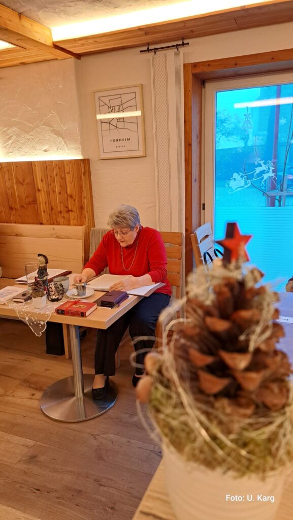 Wieder einmal eine Lesung in besonders gemütlicher Umgebung mit interessiert lauschenden Zuhörern. Dank gilt Simone, der Cafébetreiberin, die uns mit leckeren Kuchen und Plätzchen verwöhnt hat.